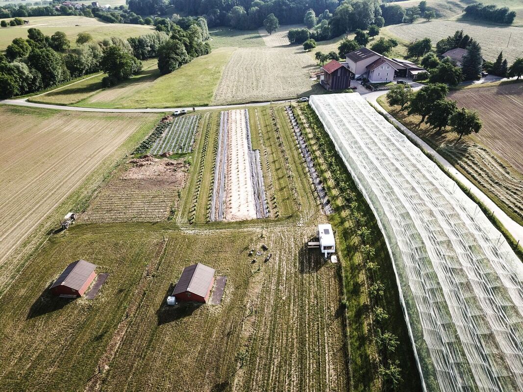 La ferme en agro-sylvo-foresterie « ArboThévoz » allie production maraîchère, grandes cultures, arbres fruitiers et élevage sur 14 hectares. Cette complémentarité entre les différents éléments de la ferme permet à l’exploitation labellisée Bourgeon Bio d’obtenir un rendement suffisant, de pratiquer la vente directe et de se passer complètement des grands distributeurs.